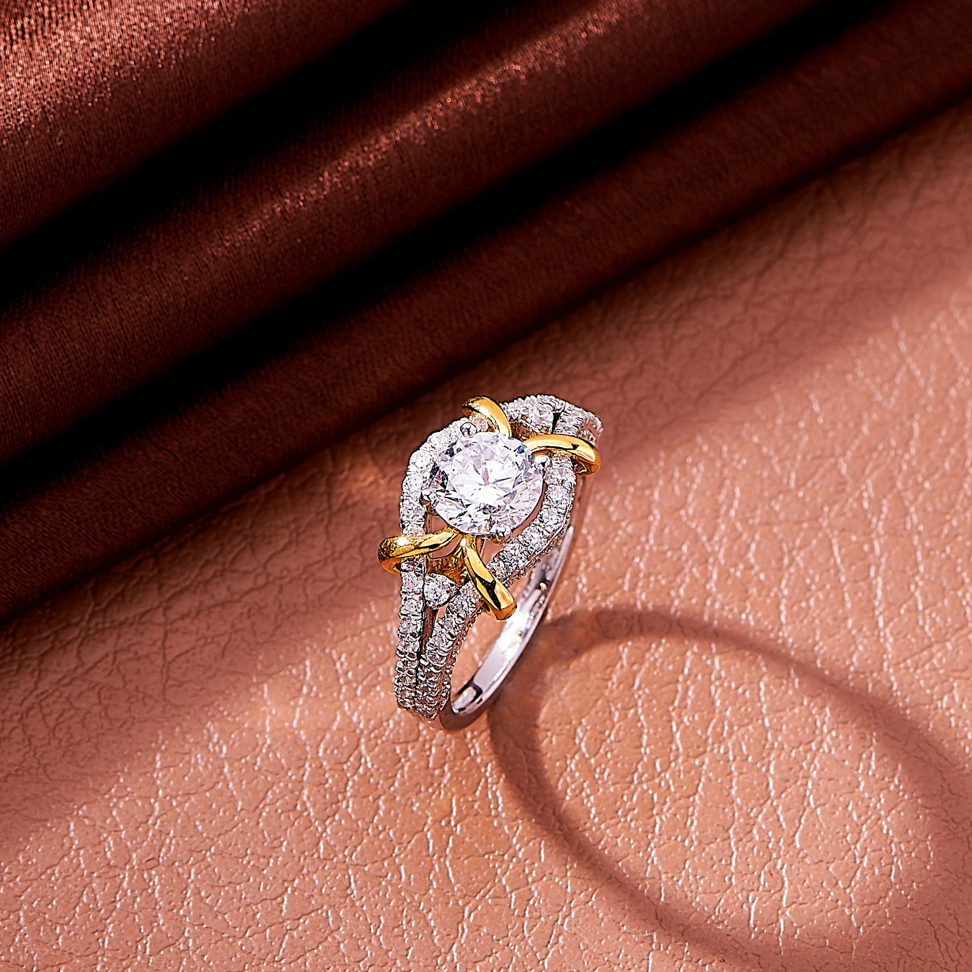 The floating solitaire catches the light from every angle, drawing attention in the most graceful way to the golden highlights making it a versatile piece that can stand alone as a statement or be stacked with other band rings for a chic, layered effect.