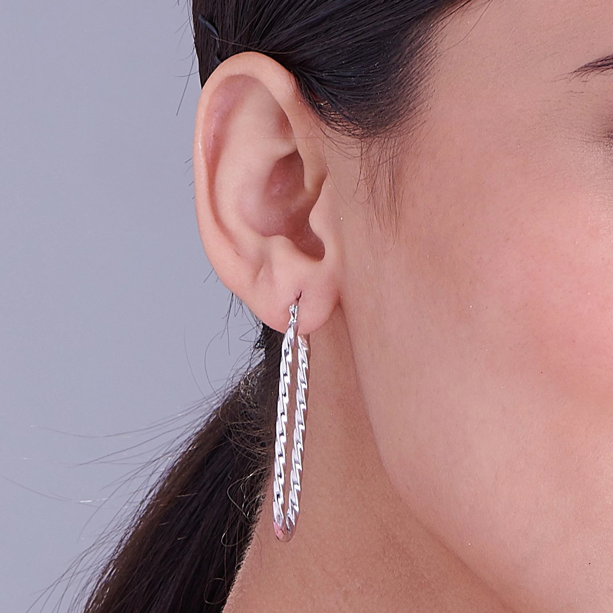 Twisted Oval 925 Sterling Silver Hoop Earrings