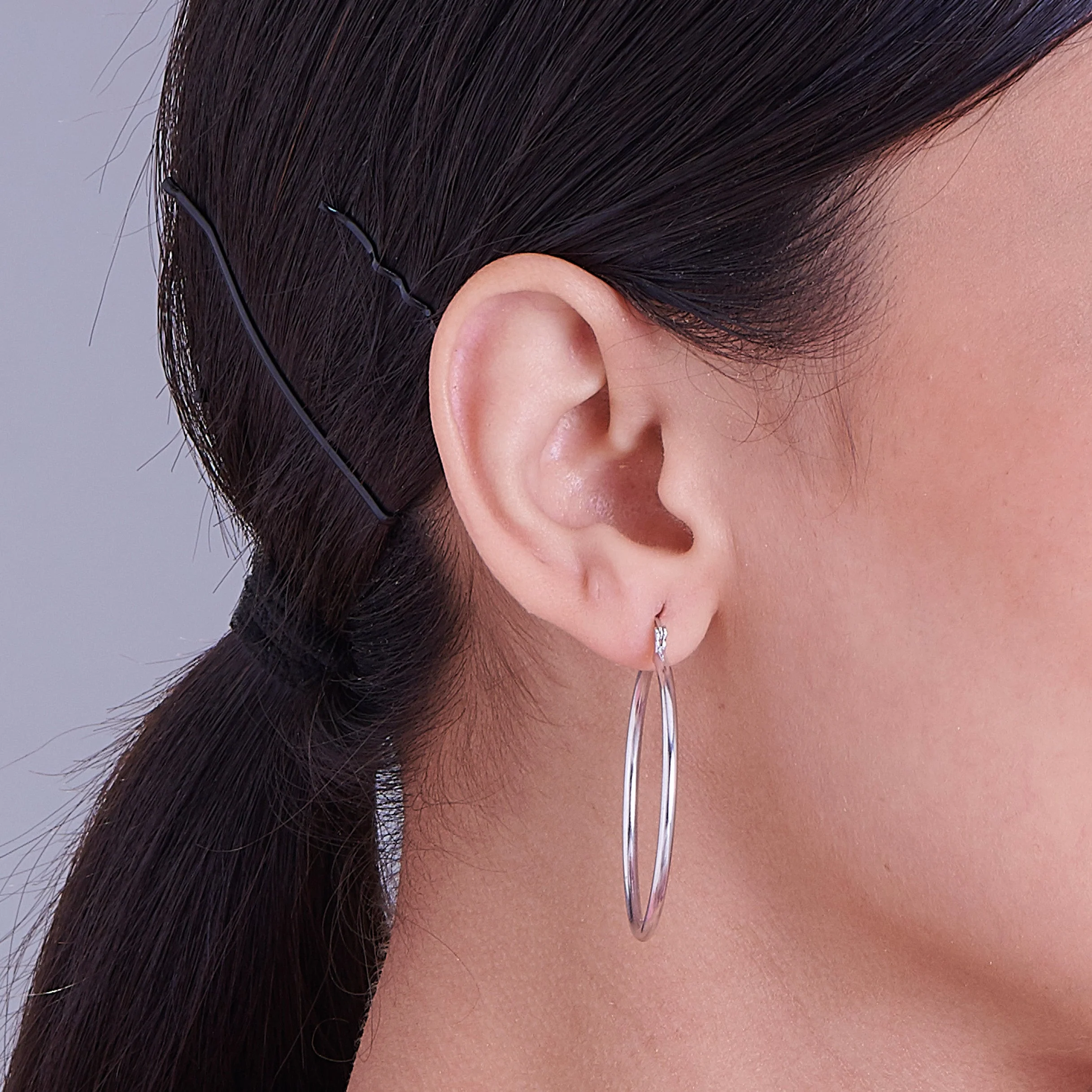 With a classic hoop design, these Sterling silver earrings add a polished touch to your ensemble, making them a staple in any jewelry collection.