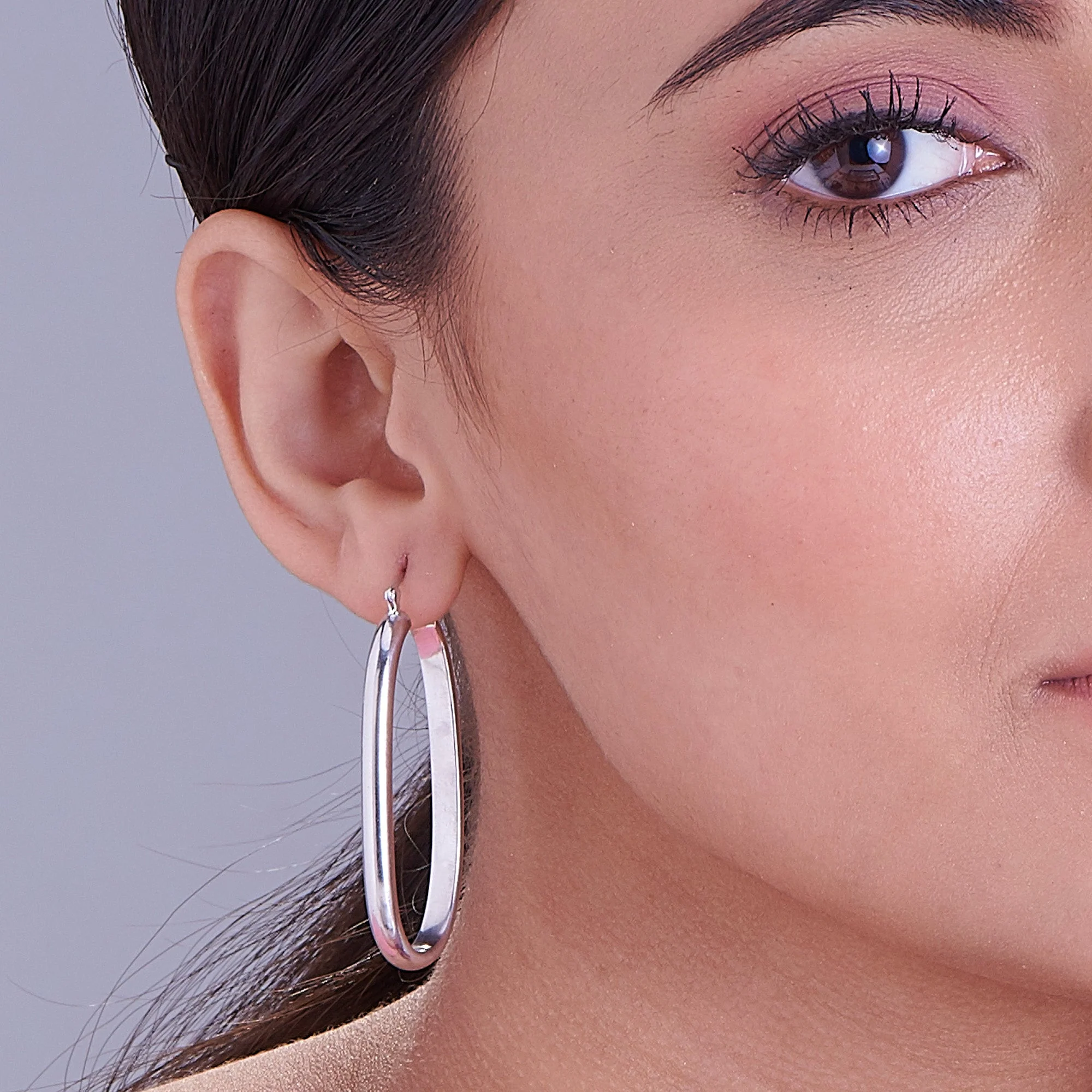 Oval Hoop 925 Sterling Silver Earrings- Medium