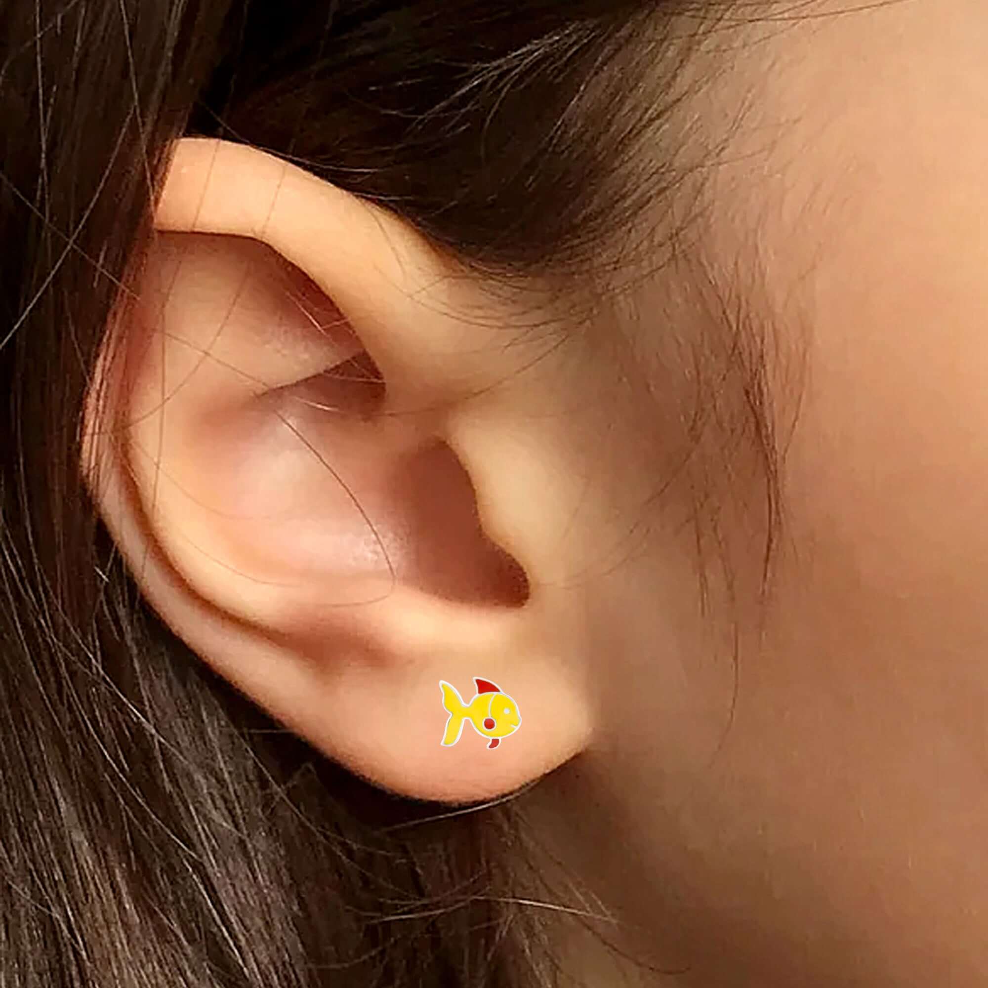 Yellow Fishy Charm 925 Sterling Silver Stud Earrings for Kids