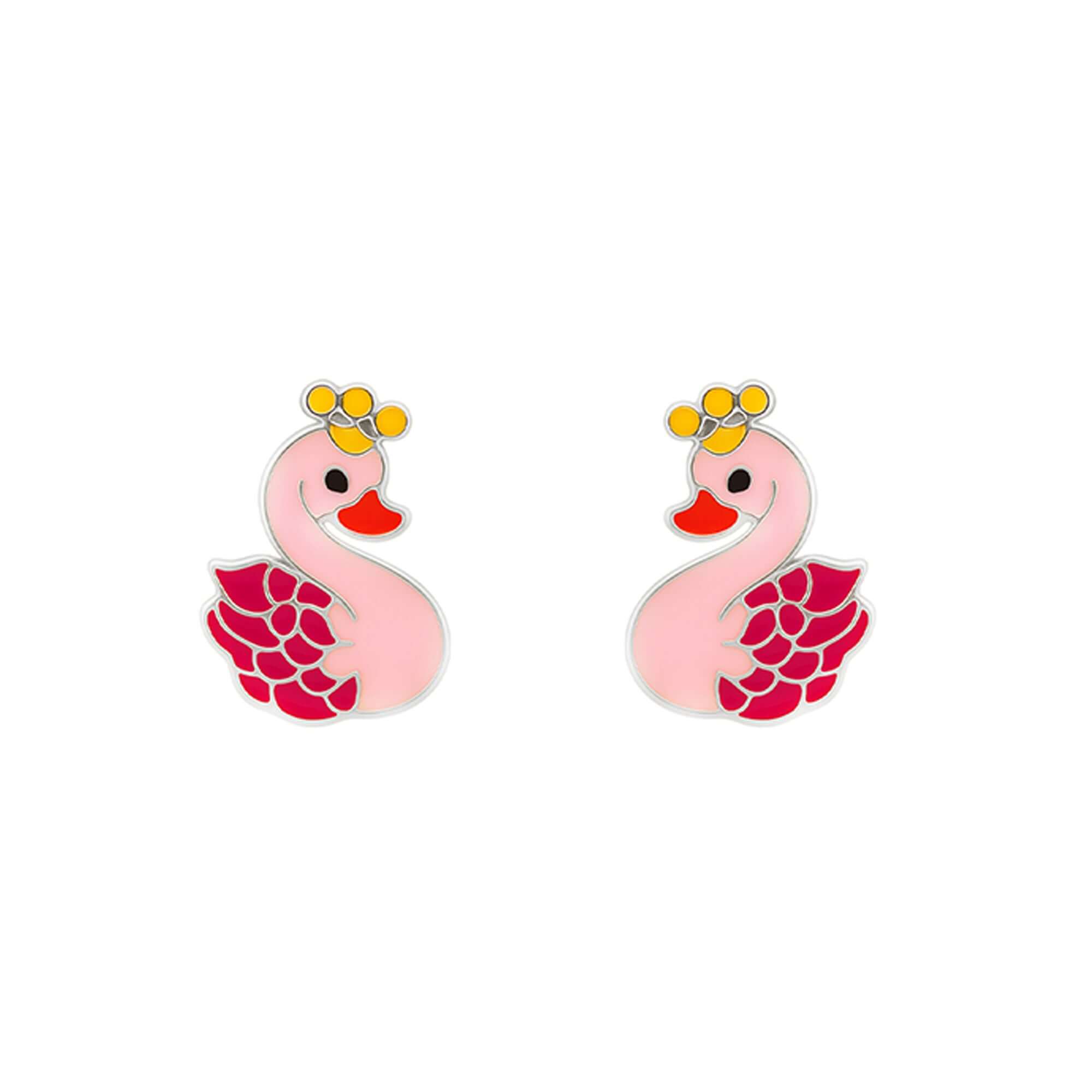 Made with 925 Sterling Silver: Durable, hypoallergenic, and safe for sensitive skin. Adorable Pink Swan Design: Features a glossy pink enamel swan with red wings and a yellow bow — playful yet elegant.Â